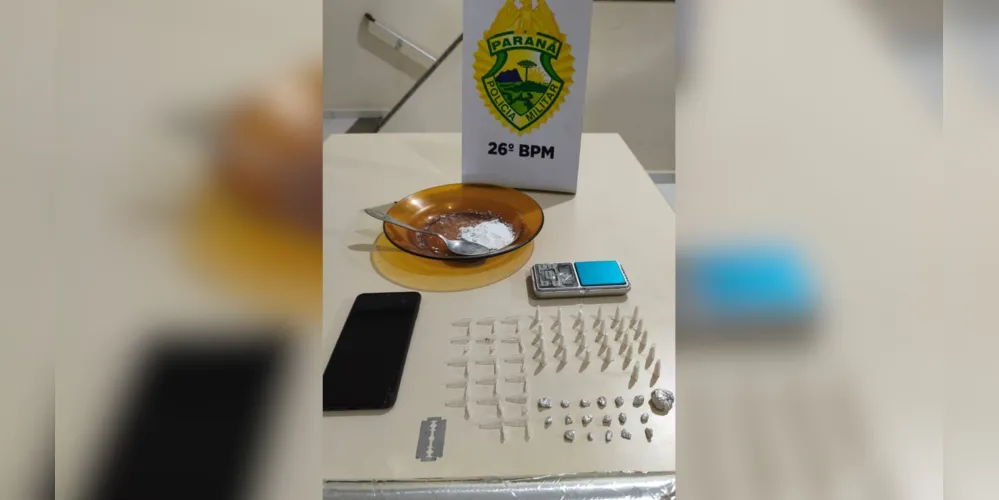 No local, foram encontrados entorpecentes já fracionados e prontos para a venda, além de diversos materiais comumente utilizados no tráfico, como balança de precisão, embalagens e utensílios para preparo das substâncias. Diante dos fatos, foi dada voz de prisão ao indivíduo, que foi encaminhado para atendimento médico e, posteriormente, apresentado à Polícia Civil do Paraná para os procedimentos legais, com apoio da equipe RPA.