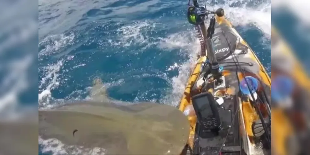 Pescador flagra momento que tubarão-tigre ataca o seu caiaque