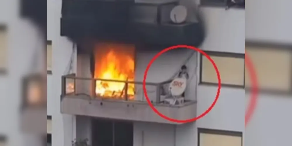 Nas imagens, a criança aparece no cantinho da sacada, tentando fugir do fogo. No andar de cima, um homem tenta conversar com o pequeno. Minutos depois, três homens aparecem, cortam a rede de proteção da varanda do andar abaixo e, felizmente, conseguem resgatar o menino.