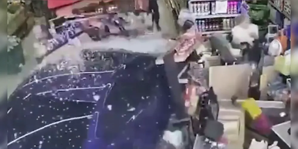 Câmera flagra momento que BMW invade mercado e atinge clientes no Paraná