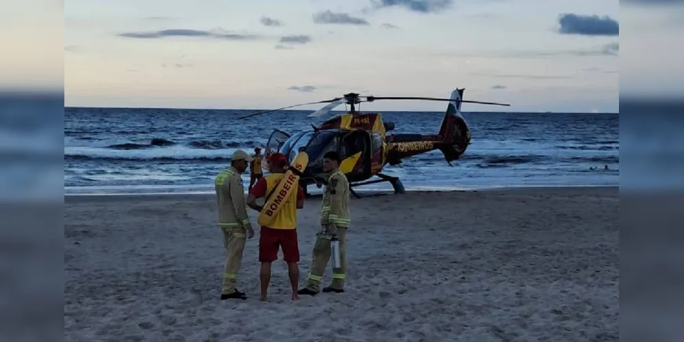 De acordo com a Polícia Militar, o helicóptero Arcanjo 01, utilizado em operações de salvamento pelo Corpo de Bombeiros do Paraná, havia pousado na faixa de areia após o isolamento da área pelas equipes.