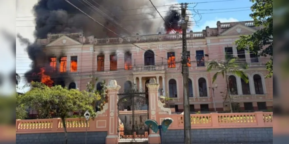Incêndio em prédio histórico: Um incêndio de grandes proporções atingiu o Instituto de Educação Dr. Caetano Munhoz da Rocha, em Paranaguá, na manhã deste sábado.
