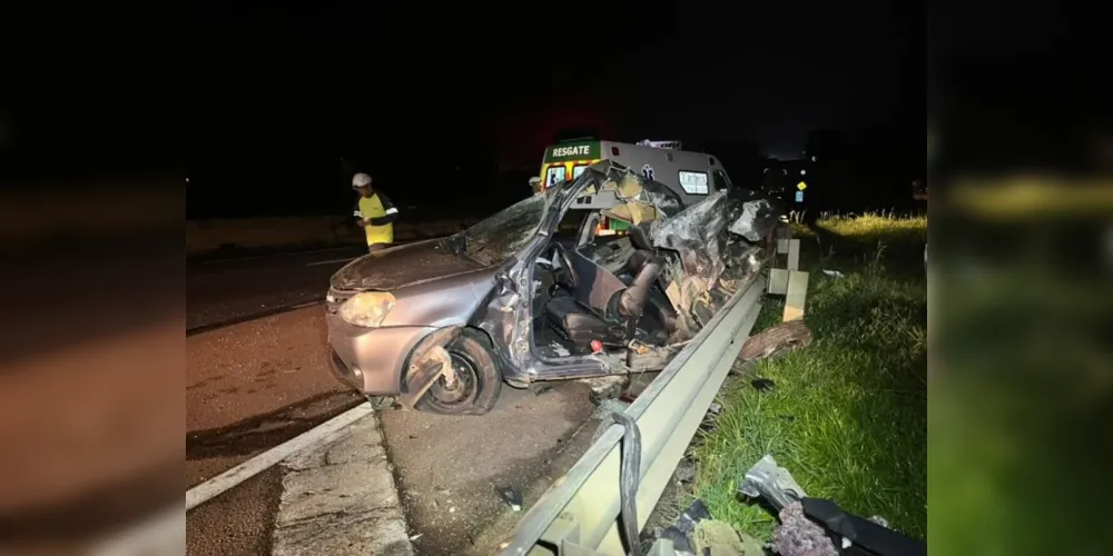 O motorista do carro ficou preso às ferragens, foi socorrido por equipes da concessionária responsável pelo trecho e encaminhado ao Hospital do Trabalhador.