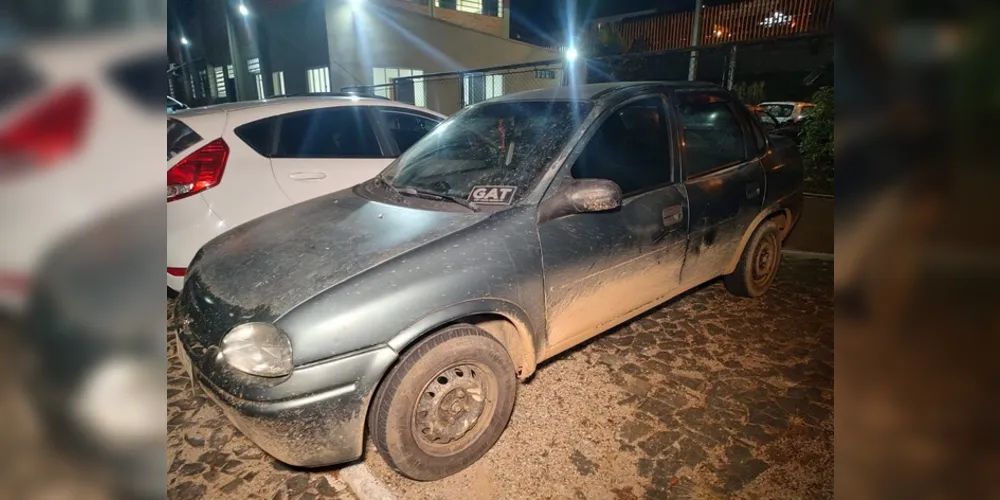 Localizado o veículo, um Chevrolet Corsa Super, cor verde, ao consultar a placa, foi constatado alerta de furto.