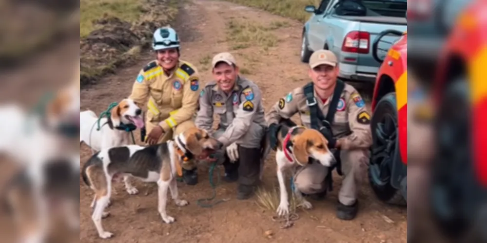 De acordo com os bombeiros, os cachorros estavam perdidos em uma região de difícil acesso, e foram localizados pelos tutores por conta das coleiras de monitoramento.