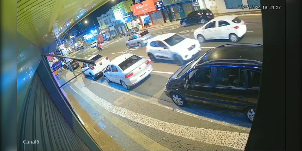 Câmera de segurança flagrou um motorista andando na contramão, numa das principais ruas de Ponta Grossa. A situação aconteceu na noite da última quinta-feira (30), por volta das 19h30, na rua Balduíno Taques, no Centro da cidade. O motorista ‘deu de frente’ com a Guarda Civil Municipal (GCM), sendo preso pelos agentes de segurança.