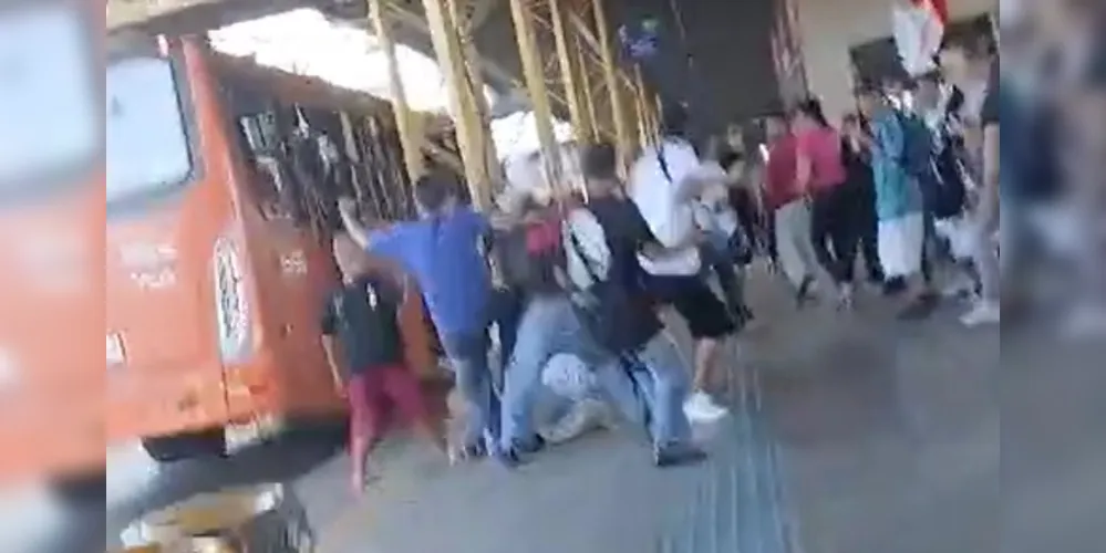 Um vídeo, que circula em grupos de mensagens, mostra um grupos de jovens agredindo outro rapaz no Terminal Central de Ponta Grossa. Não há informações de quando o caso teria acontecido.