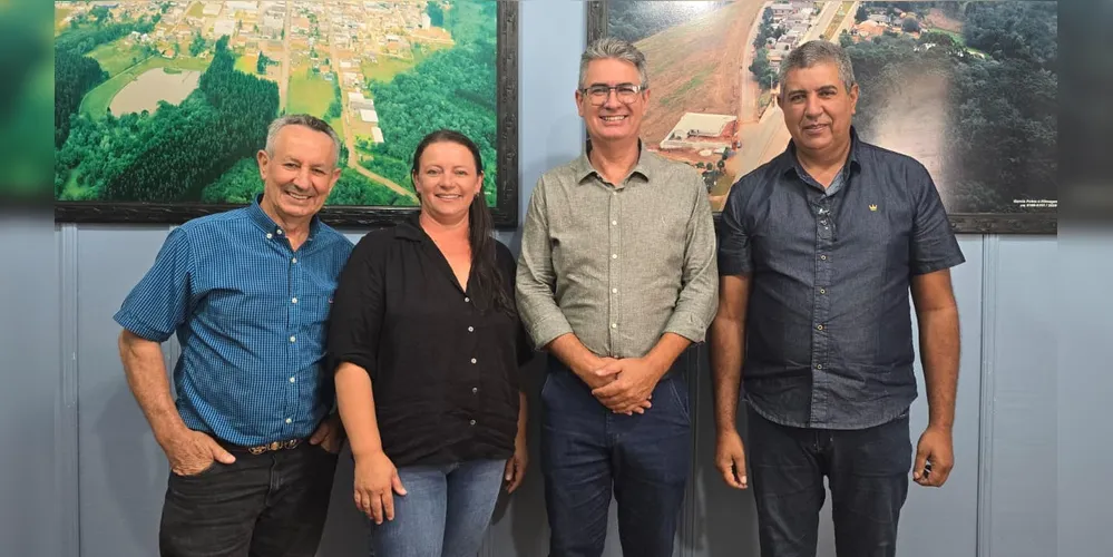 O presidente da Câmara Municipal de Ponta Grossa, Julio Küller (MDB), e o secretário de Agricultura, Pecuária e Abastecimento, Izaltino Cordeiro dos Santos, reuniram-se com a presidente da Câmara de Ipiranga, Meiriane Mendes Lepka Correia, e o secretário municipal de Agropecuária, Faustino Pereira Filho.