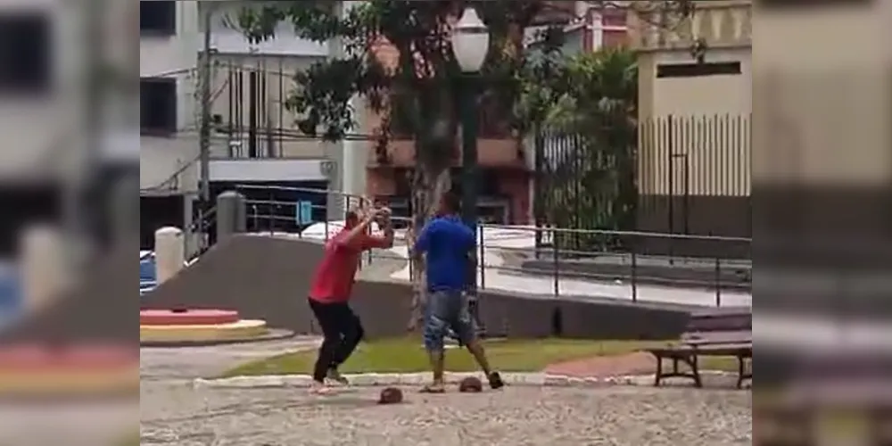 A briga foi registrada na Praça dos Polacos, no Centro de Ponta Grossa | Autor: Reprodução