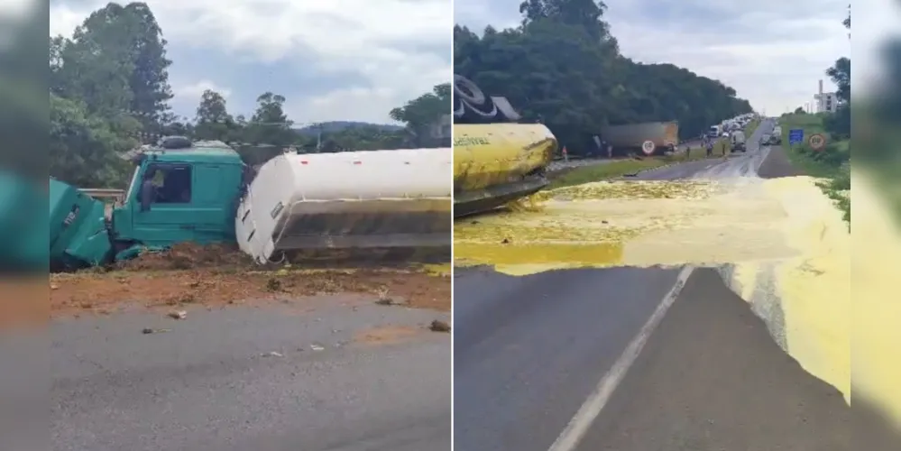De acordo com informações preliminares, um dos caminhões chegou a derramar grande quantidade de óleo vegetal sobre a pista, que permanece interditada, nos dois sentidos do percurso, entre Curitiba - Ponta Grossa.