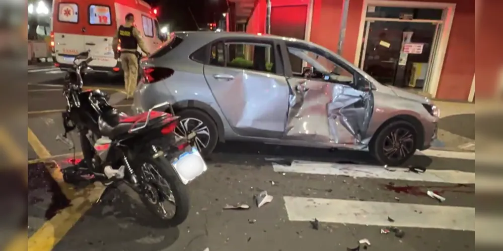 Um grave acidente foi registrado na madrugada deste domingo (29), na região central de Ponta Grossa, no cruzamento das avenidas Dr. Vicente Machado e Rua Dr. Paula Xavier. Duas pessoas ficaram feridas na colisão, que envolveu uma motocicleta Titan 160cc e um veículo Ônix.