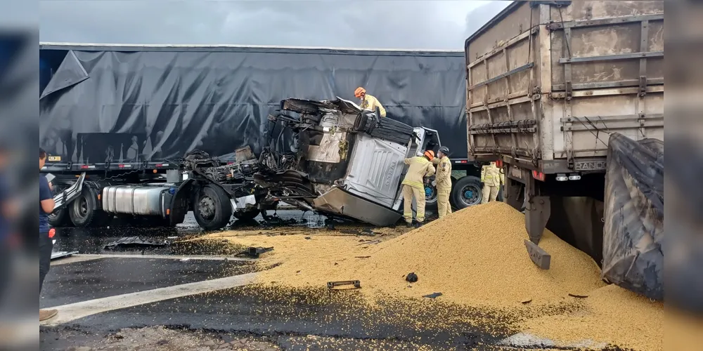 Um acidente envolvendo dois caminhões bloqueou a BR-376, em Ponta Grossa, no sentido Curitiba, na tarde desta quarta-feira (1º).