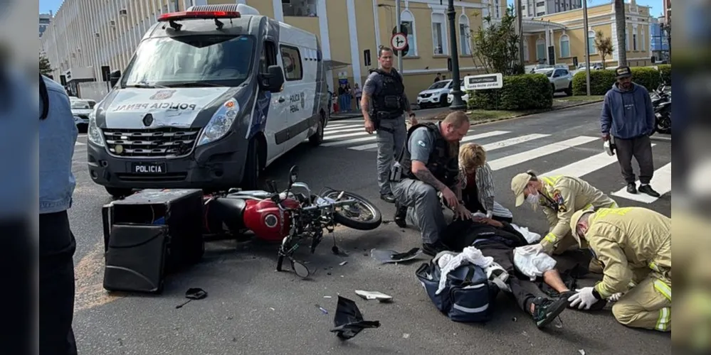 Um grave acidente envolvendo uma motocicleta e uma van da Polícia Penal foi registrado na tarde desta terça-feira (14). A colisão gerou uma fratura no fêmur do motociclista.