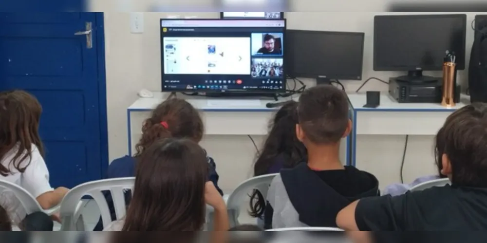 “Conversamos, também, sobre as profissões que encontramos em nossa escola e quais atitudes podemos ter para valorizá-las. Posteriormente, assistimos um vídeo do Vamos Ler – Geração Digital, onde falava um pouco sobre a profissão do jornalista. E, muitos alunos ficaram curiosos com essa profissão, então convidamos o Dhiego Tchmolo (coordenador do Vamos Ler) para uma entrevista”, destaca a docente.