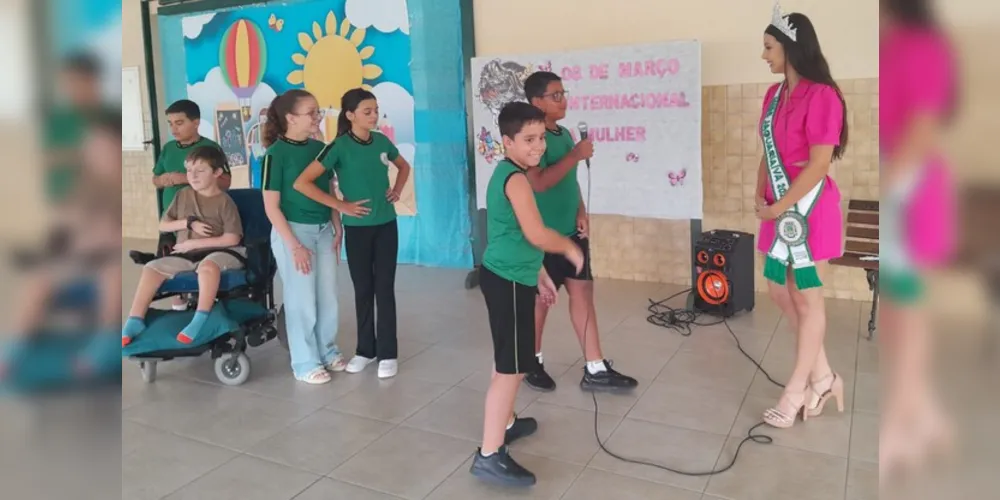 “O Dia da Mulher é uma data de grande importância que celebra as conquistas sociais, políticas e culturais das mulheres ao longo da história. Durante o período analisado, uma série de atividades e eventos foram realizados. Os alunos entrevistaram a Miss Jaguariaíva: ela veio abrilhantar este dia junto com os educandos. A mesma demonstrou muita simpatia e respondeu todas as perguntas que lhe foram feitas e deixou uma linda mensagem para o Dia Internacional da Mulher”, relata a docente.