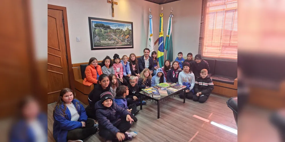 O quarto ano A da Escola Municipal Olaria Filipak, em Irati, da professora Joselaine Kavilhuka Goy, realizou uma entrevista com o prefeito do Município, Emiliano Gomes, nessa quinta-feira, 29 de maio. A docente cita que a visita pedagógica à Prefeitura e a reportagem com o gestor foi planejada visando que os alunos vivenciassem na prática os conceitos trabalhados em sala de aula sobre o Poder Executivo.