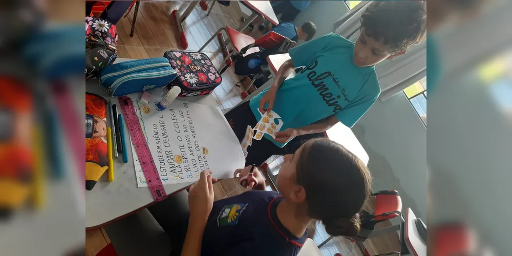 Na sequência, a turma desenvolveu atividades práticas, como a construção de um cartaz em formato de formigueiro, destacando valores como companheirismo e colaboração. “Nesse trabalho, cada aluno escreveu características positivas de colegas, valorizando atitudes e fortalecendo vínculos. Também foram elaborados cartazes com regras de boa convivência, voltadas ao ambiente escolar, familiar e social”, contou Paula.