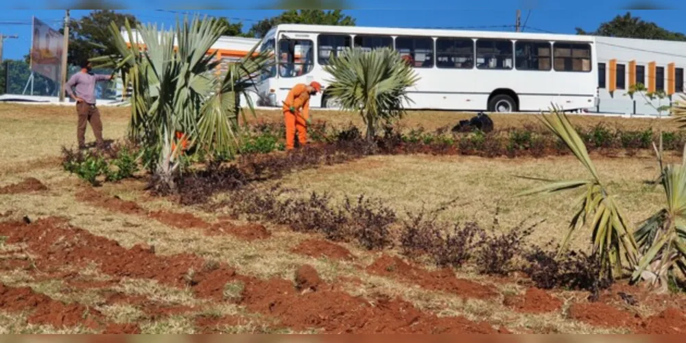 Nesta quinta-feira (22) a equipe de jardinagem da Prefeitura de Ponta Grossa está trabalhando na avenida dos Vereadores. No local está sendo implementada a manutenção