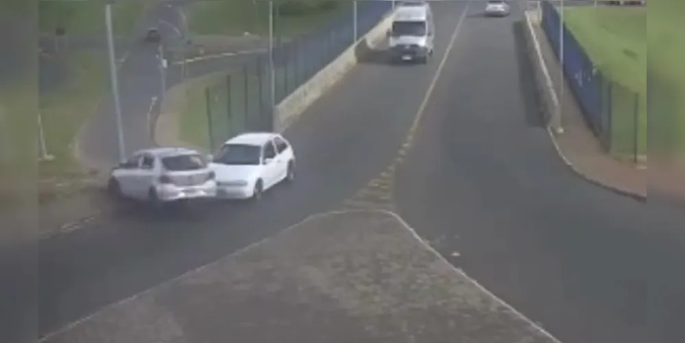 As câmeras do Centro Integrado de Segurança de Telêmaco Borba registraram uma colisão frontal de um veículo VW GOL Prata contra um poste de sinalização, nas proximidades do viaduto. O caso aconteceu no último sábado (24), por volta das 16 horas.