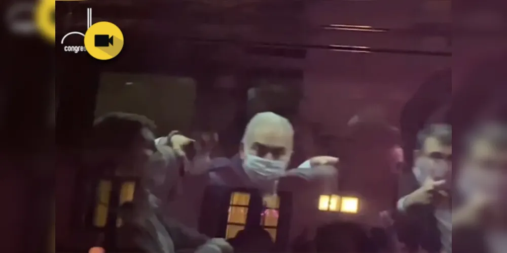 De dentro de uma van, Queiroga se levantou e mostrou o dedo do meio para quem protestava contra o presidente Jair Bolsonaro.