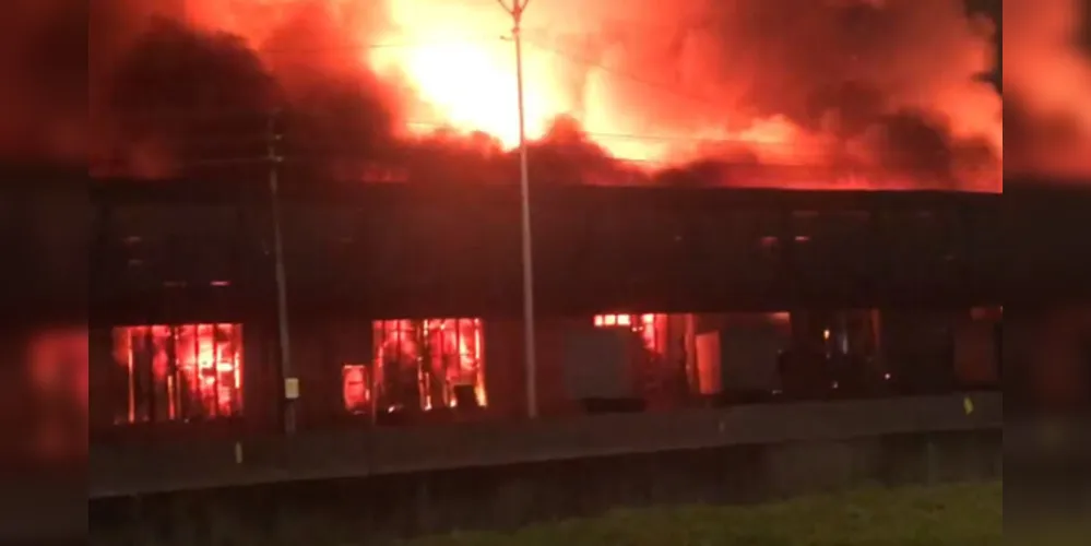 Um incêndio de grandes proporções atingiu uma transportadora na noite desta quinta-feira (25), em Barra Velha, no Litoral Norte catarinense.
