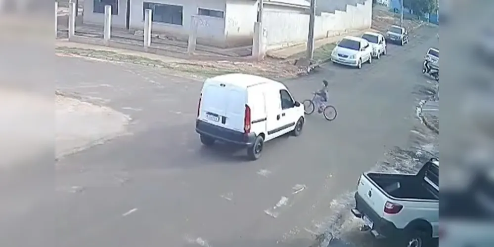 Uma câmera de monitoramento flagrou um acidente envolvendo um carro e uma bicicleta conduzida por um garoto de 6 anos. A situação aconteceu na tarde dessa sexta-feira (13), pouco antes das 16h, no bairro Jardim Pimentel, em Umuarama.