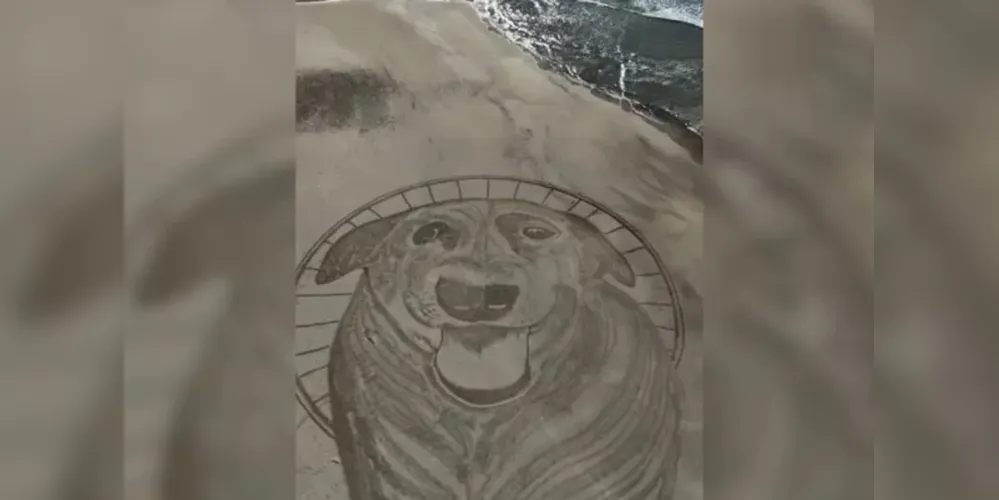 O cão comunitário Orelha, que morreu após ser vítima de maus-tratos, foi homenageado com uma arte de cerca de 40 metros desenhada na areia da Praia da Galheta, em Florianópolis (SC), nessa quarta-feira (28). O trabalho foi feito pelo artista Clayton Balduino.