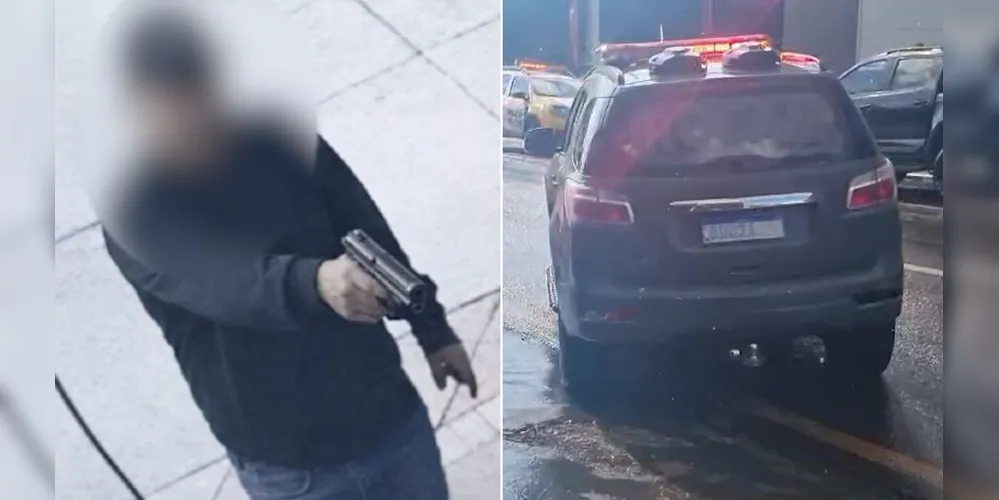 Uma imagem capturada por câmera de segurança registra o suposto atirador que matou pai e filho, na tarde desta terça-feira (3), em uma loja de veículos localizada no Parque São Paulo, em Cascavel.