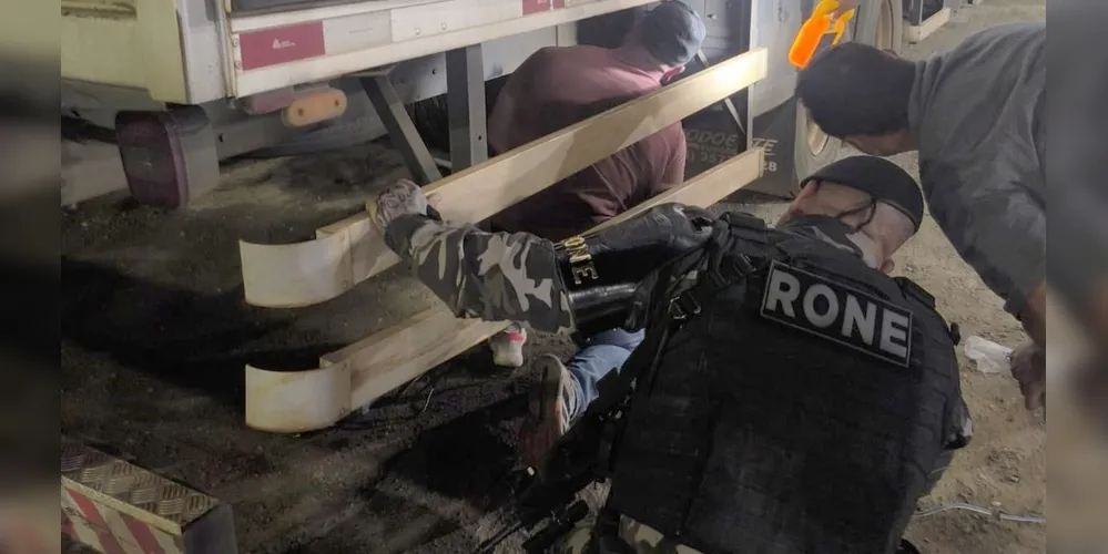 Durante a abordagem, o motorista não colaborou com a fiscalização, o que aumentou as suspeitas. Em vistoria detalhada, os policiais encontraram a carga escondida em um compartimento oculto no baú do caminhão, semelhante a um cofre. Para acessar o local, foi necessário abrir o assoalho do veículo.