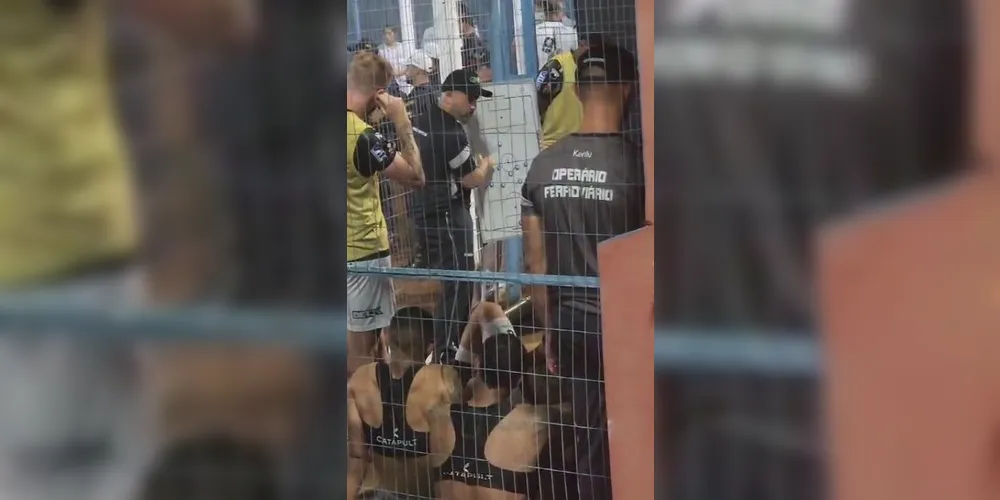 Jogadores e comissão técnica do Operário Ferroviário aparecem no local durante o intervalo do jogo disputado na noite dessa quarta-feira