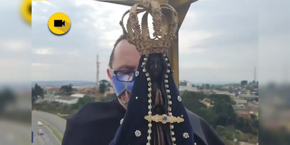 "Nós tivemos uma variação na nossa torre e hoje fizemos o conserto. Ao terminar ela vamos levar (a imagem) ao alto da cruz para dar uma benção para todos nós e fazer a consagração (da cruz)", explica o pároco. Toda a benção foi transmitida ao vivo pelas redes sociais da paróquia.