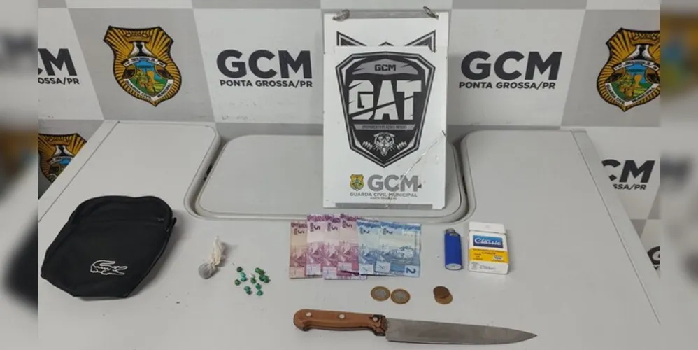 Uma faca, cigarros, 14 pedras de crack e 2,3g de maconha foram apreendidos pela Guarda Civil Municipal