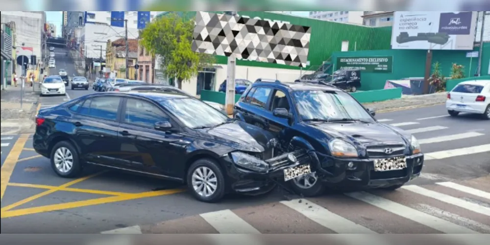 Um acidente de trânsito foi registrado na tarde desta terça-feira (27) em um cruzamento movimentado da região central de Ponta Grossa. A colisão ocorreu na intersecção das ruas Comendador Miró e Santos Dumont e envolveu dois veículos de passeio, um Volkswagen Virtus e um Hyundai Tucson.