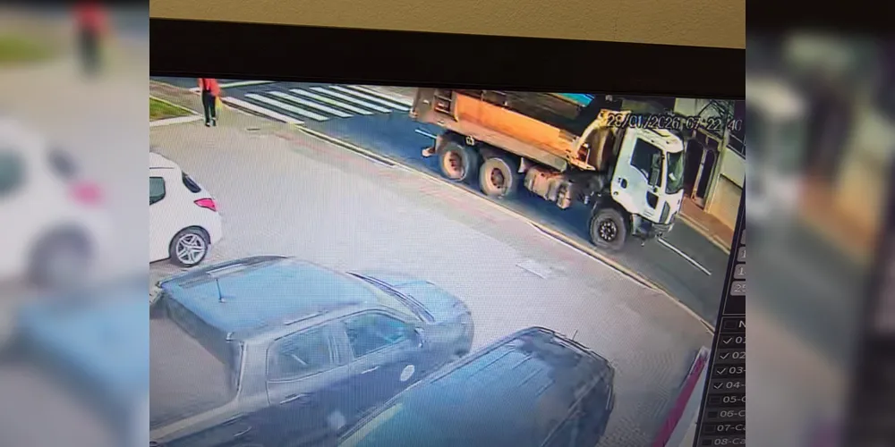 Caminhão fura o sinal e atropela motociclista no Centro de PG; veja o momento
