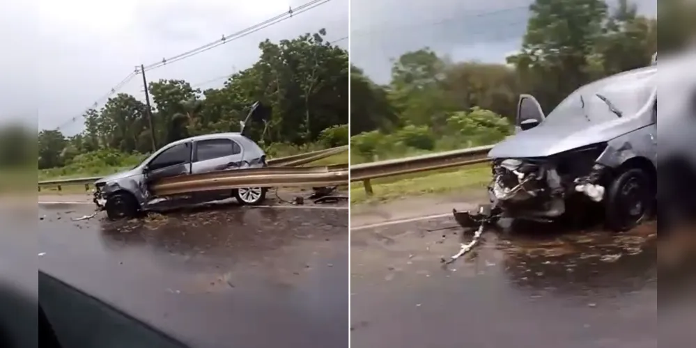 Carro atinge 'guard rail' e deixa trânsito lento entre Carambeí e Ponta Grossa