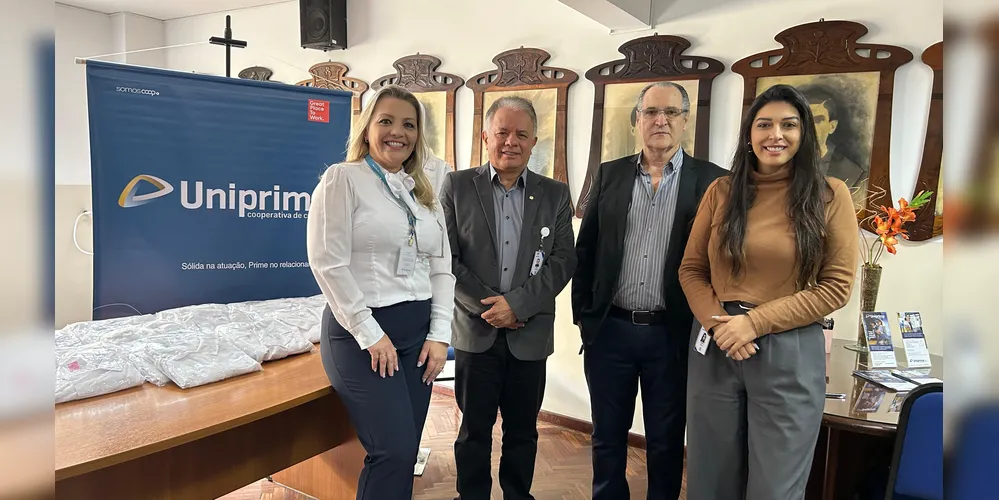 Os enfermeiros e técnicos do Hospital Santa Casa de Ponta Grossa começam hoje (8) a receber os mais de 250 jalecos doados pela cooperativa de crédito Uniprime. As doações foram entregues pelo Dr. Carlos Augusto Marques, assessor de relacionamento da Uniprime, e pela gerente da agência de Ponta Grossa, Daniele Fontana Dalssoto, ao provedor da Santa Casa, Juarez Antônio Carvalho.  A cooperativa é especializada na área da saúde e oferece soluções financeiras personalizadas para clínicas médicas e profissionais da saúde.