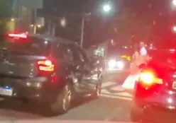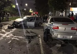 Suposto racha termina com carros destruídos e motociclista ferido em via rápida de Curitiba CURITIBA E RMC