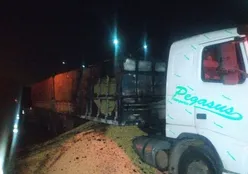 Caminhão com placas de PG pega fogo e motorista fica ferido na PR-151 em Castro 05/04/2026, 10:37 PONTA GROSSA