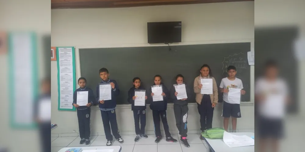 O 5º ano B da Escola Municipal Doutor Jahyr Lopes, em Castro, da professora Karina Fagundes da Fonseca, desenvolveu um trabalho de combate ao bullying. A docente explica que a prática aconteceu com entrevistas dos alunos junto aos familiares, com questões como ‘você sabe o que é bullying?’, ‘sofreu com algum tipo de apelido ou agressão?’, ‘como se sentia?’, ‘um conselho para que o bullying não acontece’.