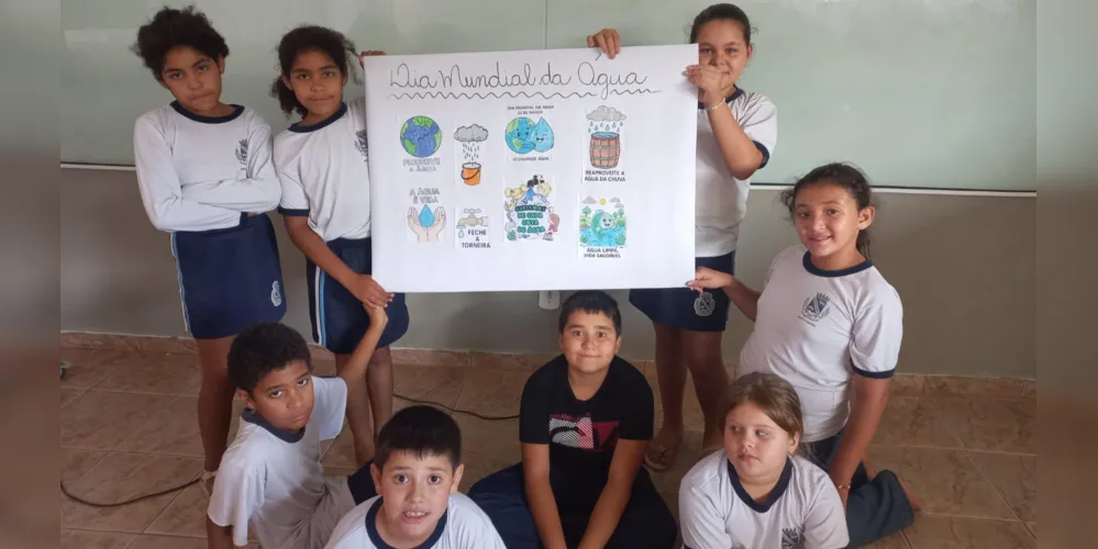O quarto ano A da Escola Municipal Manuel Bandeira, em Ortigueira, da professora Valdinéia Quedas Souza, desenvolveu um trabalho sobre o Dia Mundial da Água, comemorado em 22 de março, com o objetivo de conscientizar os alunos sobre a importância deste bem natural para a vida, destacando sua presença no cotidiano, utilidade para os seres vivos e a necessidade de preservação desse recurso essencial.